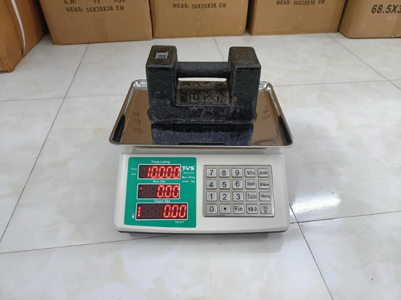 - Màn hình hiển thị: Số cân (kg), đơn giá trên 1kg, tổng tiền khách phải thanh toán