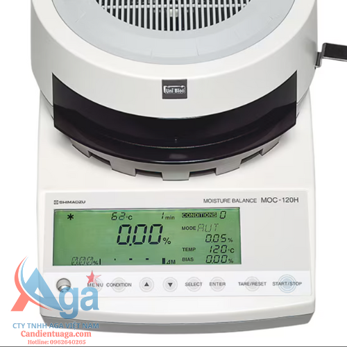 - Cân phân tích độ ẩm sấy ẩm Shimadzu MOC 120H có khả năng cân: 120g