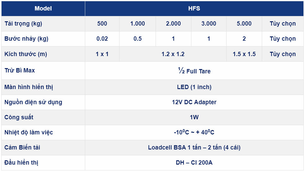 3.Thông tin kỹ thuật cân sàn điện tử CAS HFS Series: