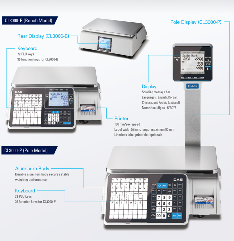 1. TÍNH NĂNG SẢN PHẨM CỦA CÂN SIÊU THỊ TÍNH TIỀN CAS CL3000P: